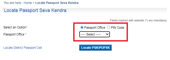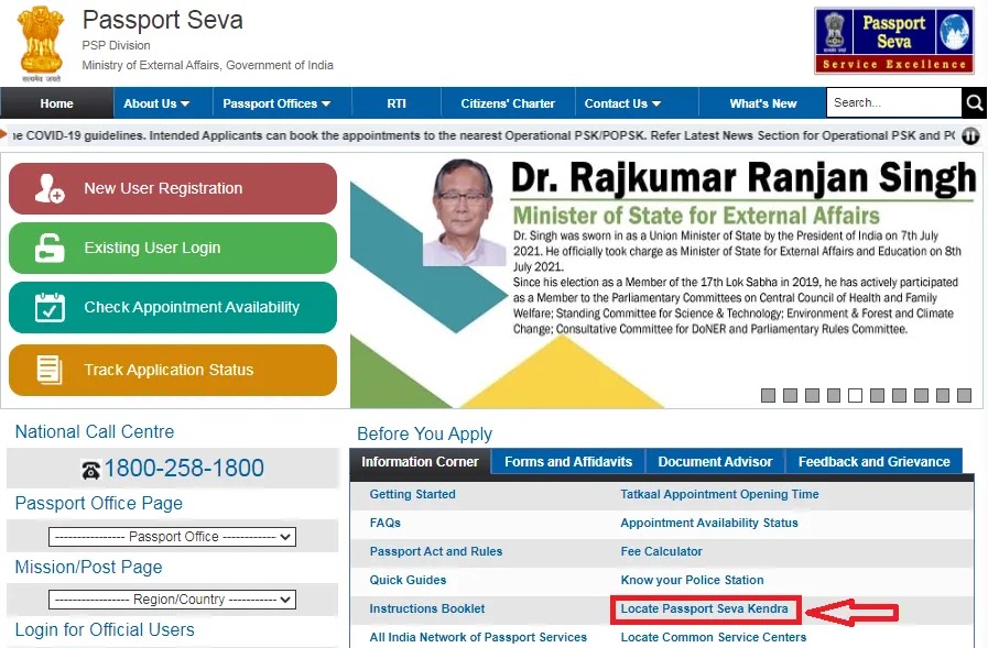 STEP 2: आपको Locate Passport Seva Kendra नाम का विकल्प दिखाई देगा, उस पर क्लिक करें।