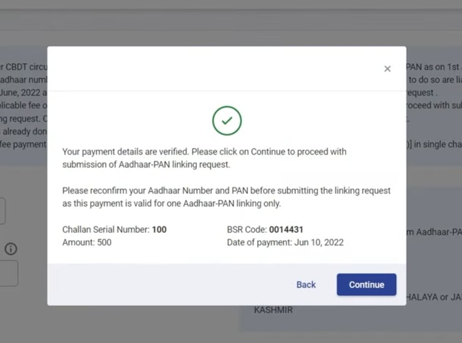 नोट: आप आवश्यक ऑनलाइन शुल्क का भुगतान करने के बाद कुछ समय प्रतीक्षा करने के बाद पैन कार्ड को आधार कार्ड से लिंक कर सकते हैं। फिर आपको वहां शुल्क भुगतान करने का पेज नहीं दिखेगा।