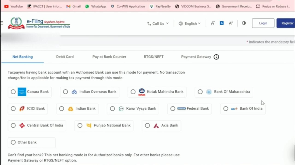 STEP 6: उसके बाद आपके सामने भुगतान के कई विकल्प दिखाई देंगे, आप जिस तरह से भुगतान करना चाहते हैं (नेट बैंकिंग, डेबिट कार्ड, क्रेडिट कार्ड, भुगतान गेटवे) से भुगतान कर सकते हैं।