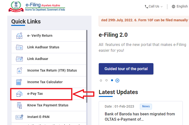 STEP 2: उसके बाद आपको e-Pay Tax बटन पर क्लिक करना होगा।